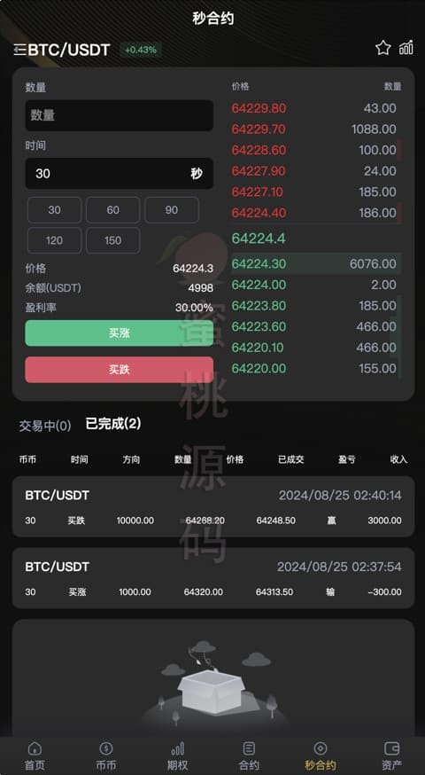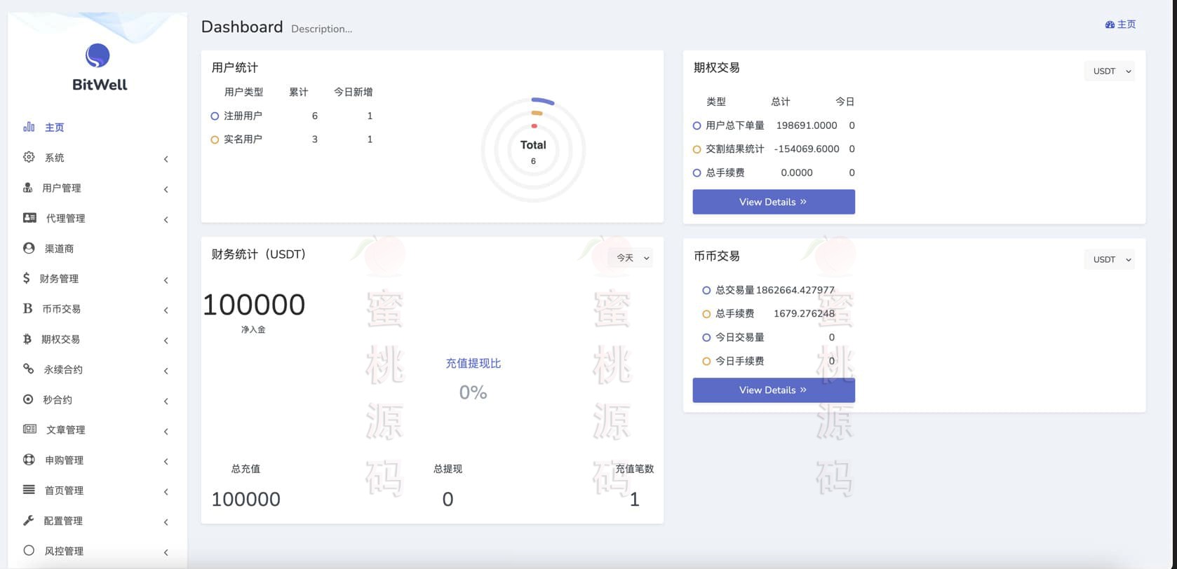 UI风格简洁大气,交互流畅,是一套适合运营及二开扩展的专业交易系统源码。