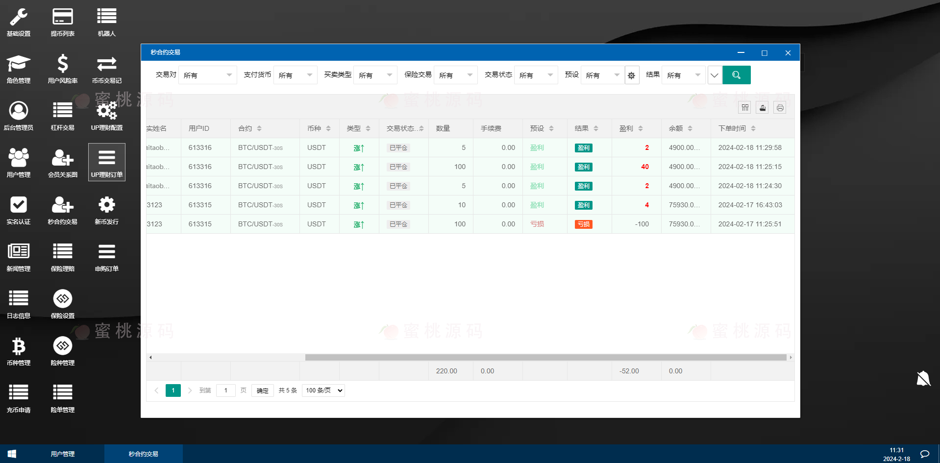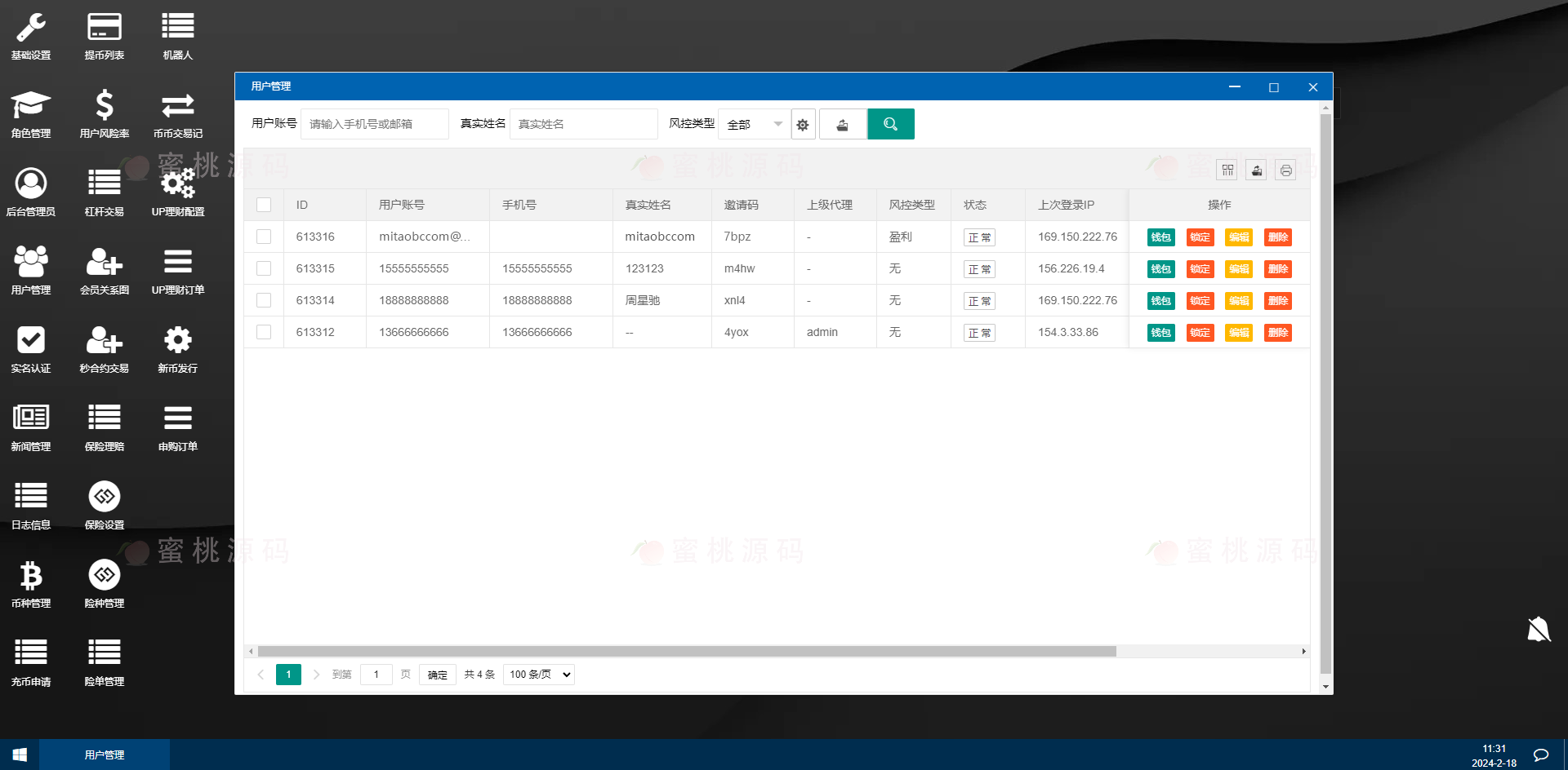 支持后台风控与盈亏比例自定义
