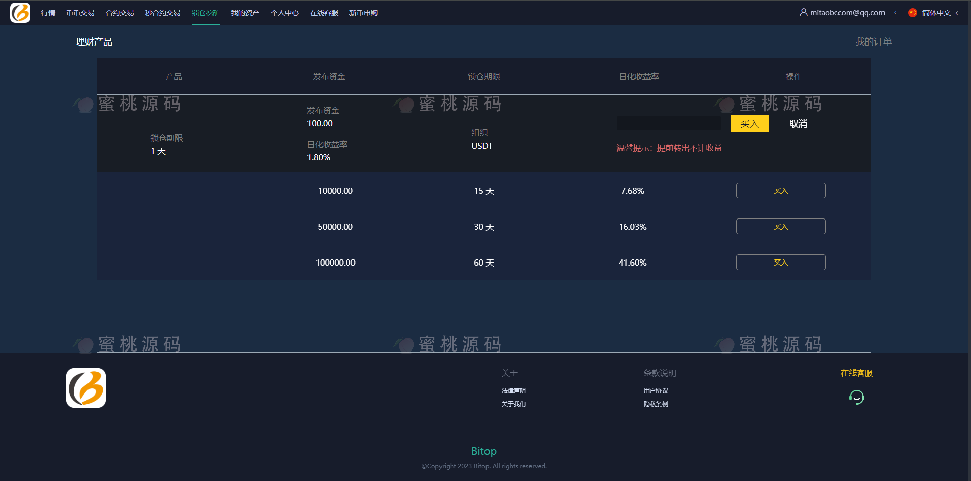 自定义锁仓周期、收益率