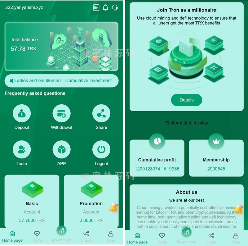 H5多语言理财TRX波场源码区块链投资系统程序自动钱包归集+代理系统